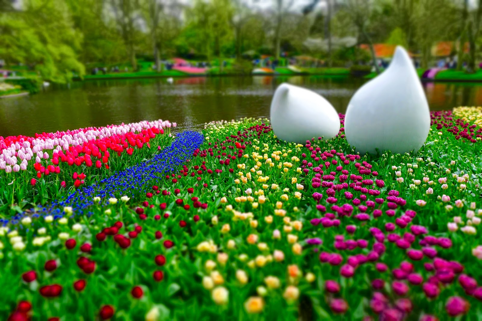 ...and other flowers too. Basically anything other than Tulips! Although there were mostly tulips in the Flower Kitchen (Keukenhof), the other types of flowers they had were also equally beautiful! The whole place was bursting with colour, and there were also a few non flower photo opportunities along the way as well! One side of our trip that was less than perfect was our stop for food. As expected it was absolutely packed and there wasn't nearly enough seating for the amount of visitors. The queue for the food was huge and the people serving didn't seem very sure of what they were doing. Other than this however, I would say the trip went well - they even had free wifi around the gardens! Bonus!